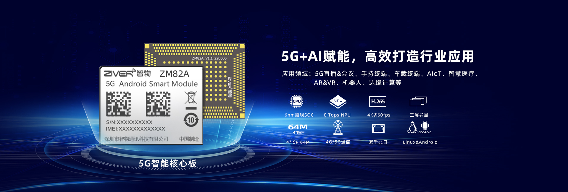 ZM82C(MTK6877)集成了豐富的功能接口,包含LCM、觸摸屏、攝像頭、麥克風、揚聲器、UART 接口、USB 接口、I2C 接口、 SPI 接口,PCIe 接口等等;可提供語音、短信、通訊簿,可廣泛應用于 5G網(wǎng)絡(luò)下的視頻記錄儀、智慧駕艙,智能POS 收銀機、物流終端、VR Camera、智能機器人、視頻監(jiān)控、安防監(jiān)控、智能信息采集設(shè)備、智能手持終端、無人機等產(chǎn)品。